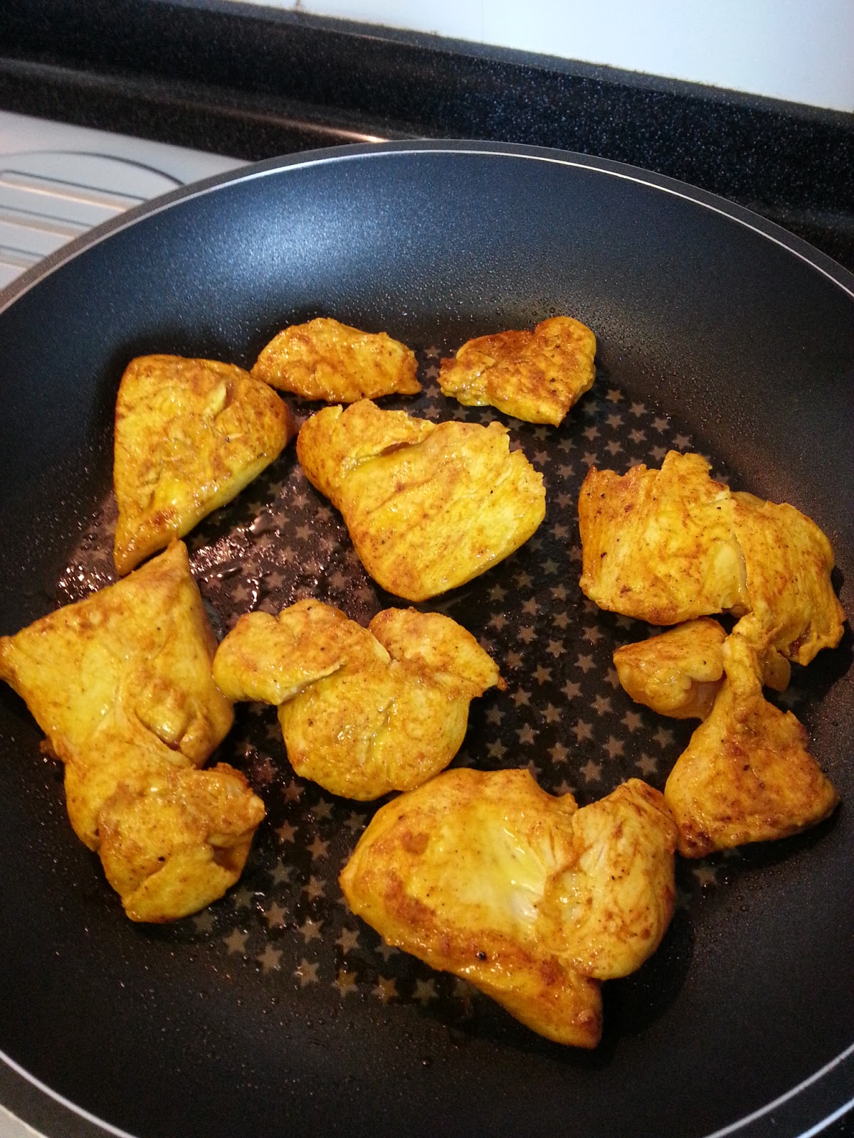- 1.5 chicken breast (Small), cut into quarters (You can use 3 chicken thighs with the skin on if you do not mind the extra calories)