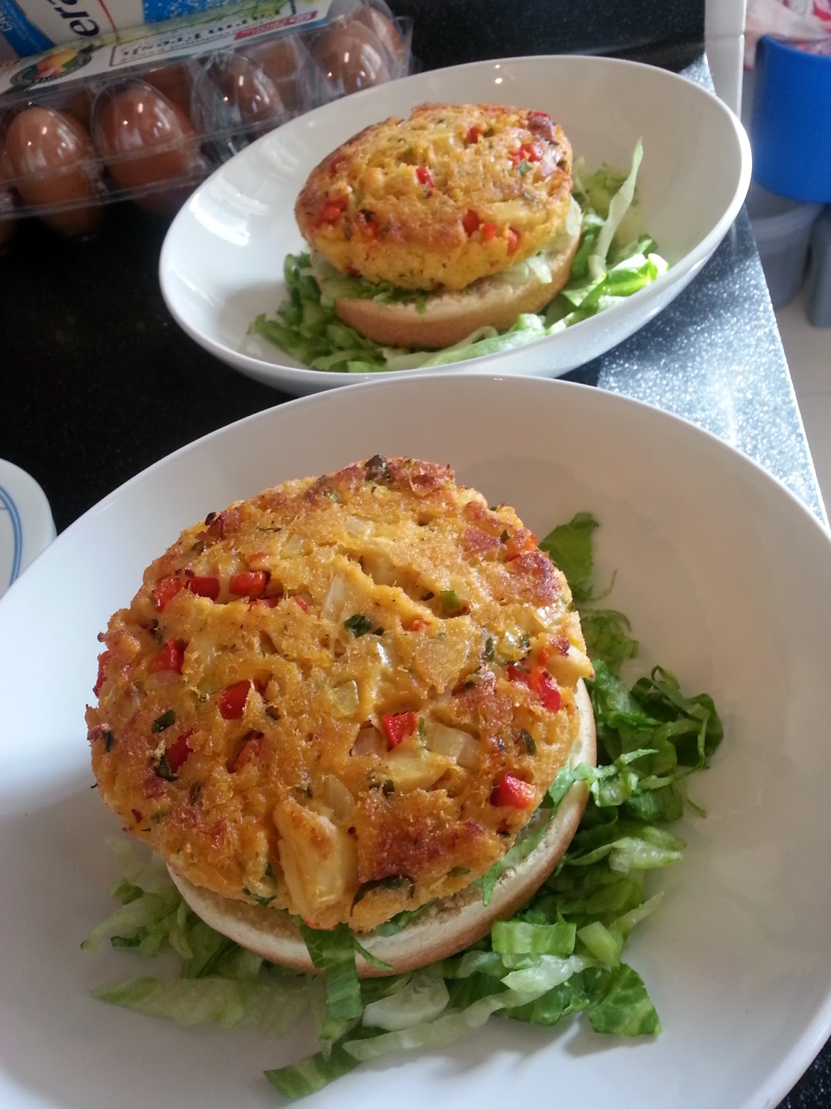 Who doesn’t like crab cakes? Who doesn’t like burger? Then I decided to put it all together. So when I made my chilli crab sauce for the ‘Singapore Chilli Crab Cream Pasta‘ yesterday, I took out about 4-5 tbsp of the sauce before I add heavy cream and egg. For the sauce recipe, please go to http://delishar.com/2013/09/singapore-chilli-crab-cream-pasta.html Adjust the recipe to make about 1/2 cup sauce. Or you can simply use a premix, because you do not need much of the sauce. But be careful when you use premix, you need to adjust how much to put it because of the difference in concentration and salt content.