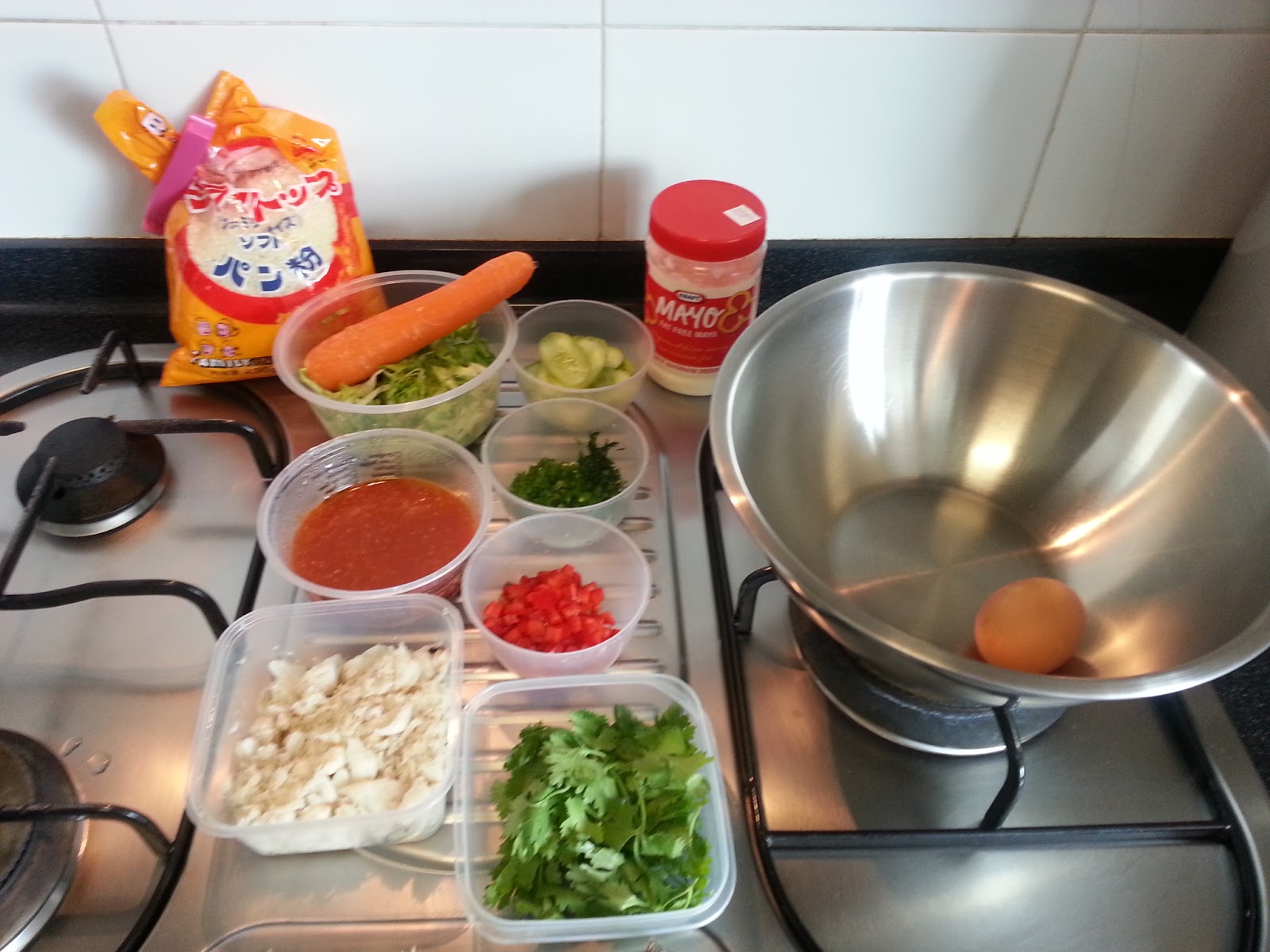 When I was cracking my head during my weekly mean planning… Yes, I plan my menu weekly to minimize wastage of fresh produce. I was thinking to myself, how else can I fusion our local and very famous chilli crab? Then crab cakes came to mind. I have always wanted to make crab cakes, and with that newly found frozen crab meat.. it makes it so easy!