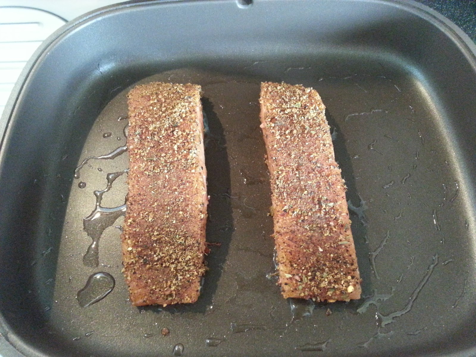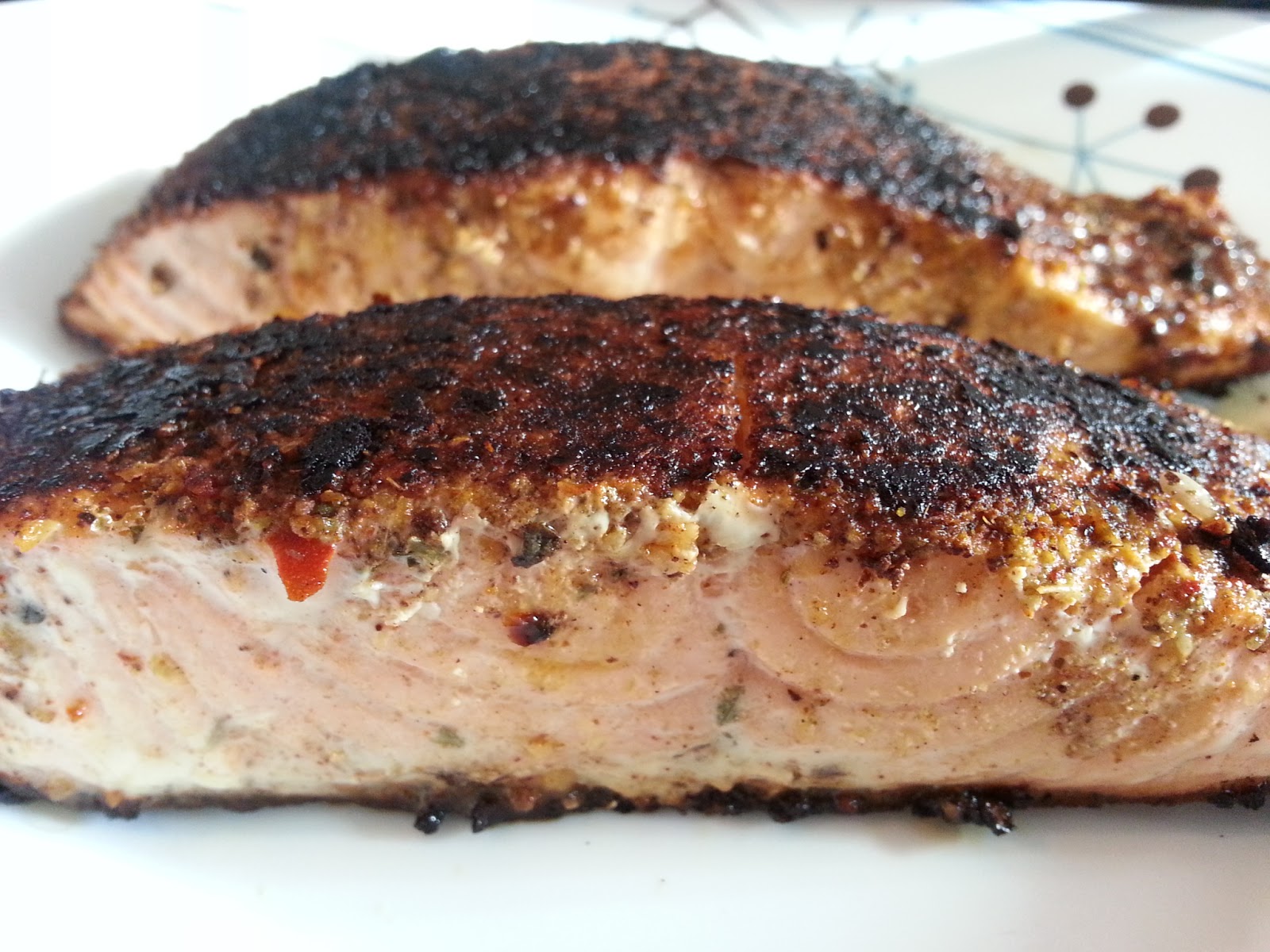 It locks in the spices used to coat the fish, gives it a smokey flavour, and seals in the juices during the very short cooking process. It gives the skin and top of the fish a nice crust but keeps the flesh of the fish very succulent. This cooking technique is often paired with cajun spices. Traditionally the meat is dipped in butter, coated with spices, and cooked on very high heat. I’m making it healthier by omitting the butter.