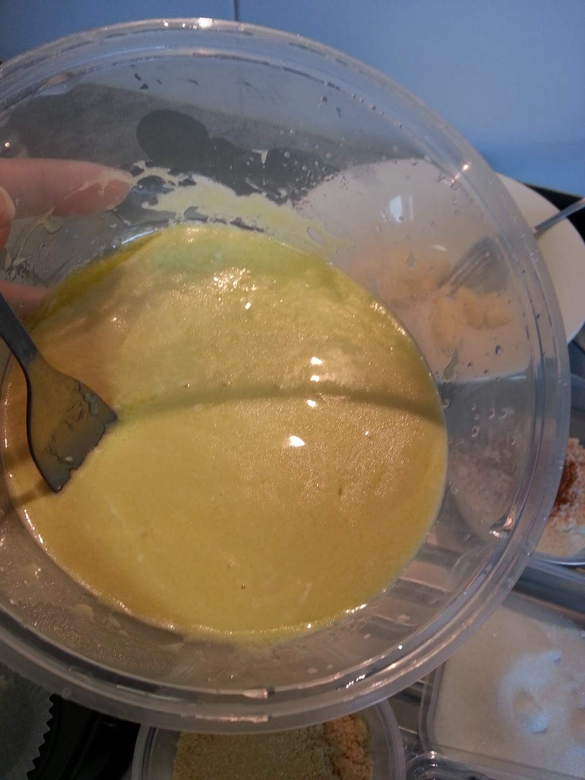 Egg, oil, sour cream, vanilla extract until it looks like that