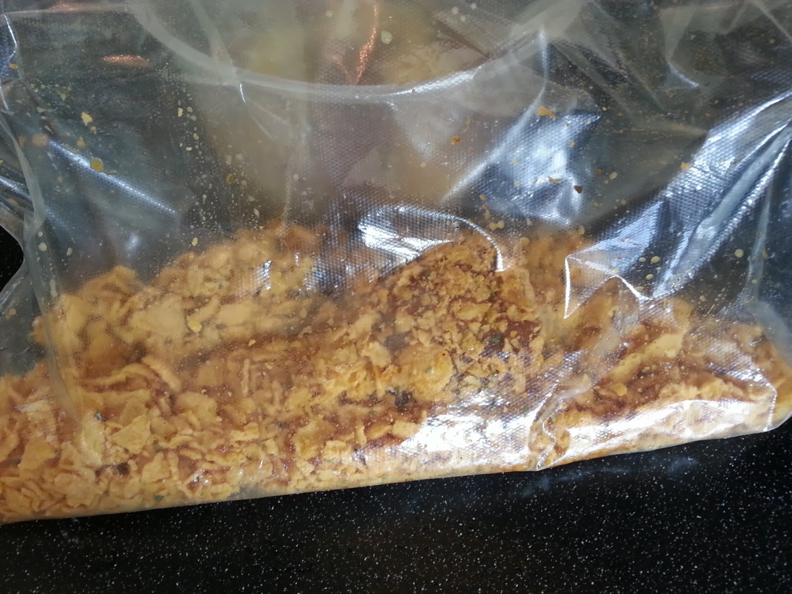 In a ziplock baggie, pour in 2 cups of cornflakes, dried parsley, and 1 tsp of ultimate spice mix.