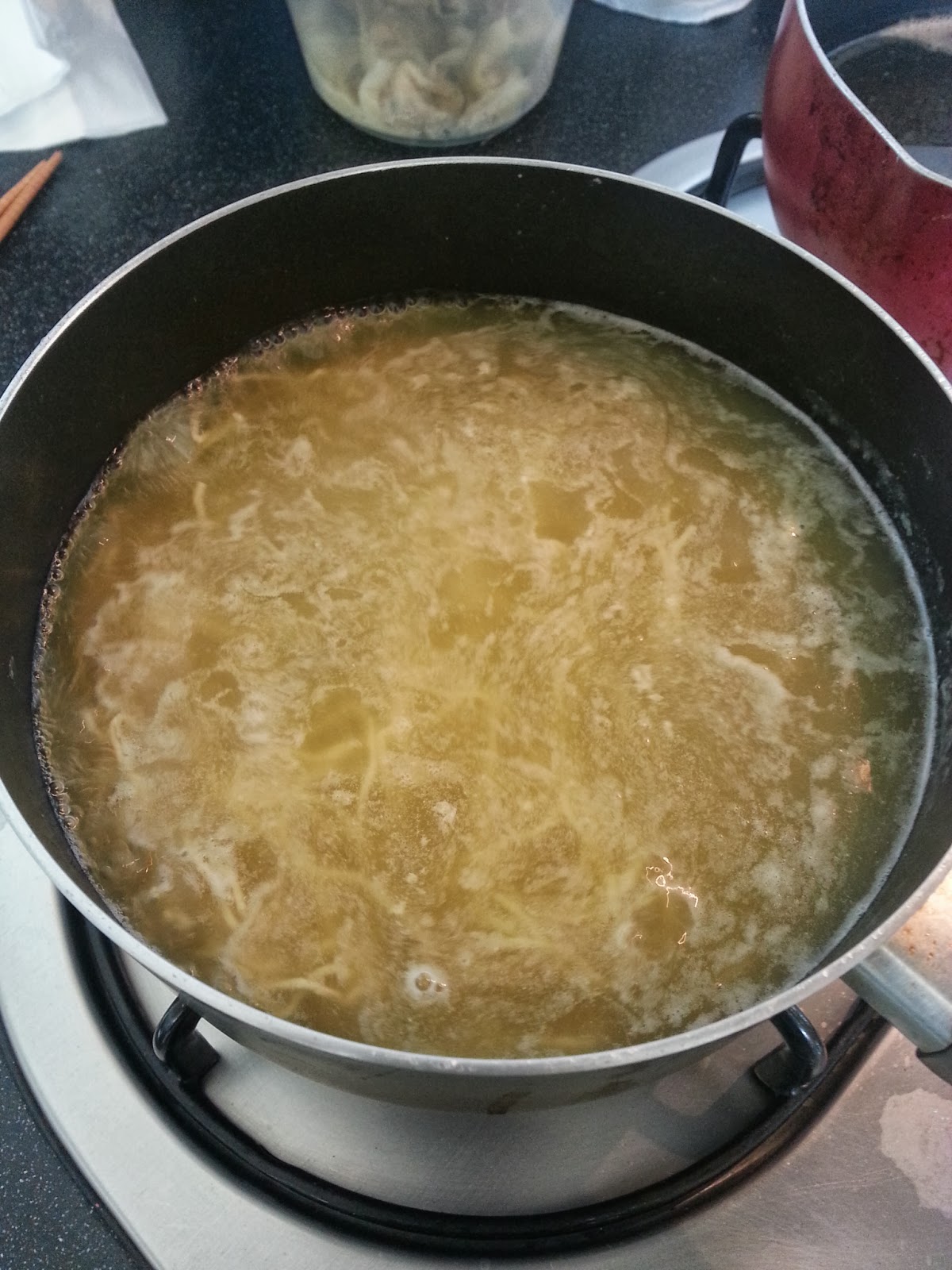 - You can see that I have another pot of stock behind for my noodles.