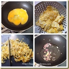 tablespoon of oil in a frying pan, add in lightly beaten eggs. Fry the