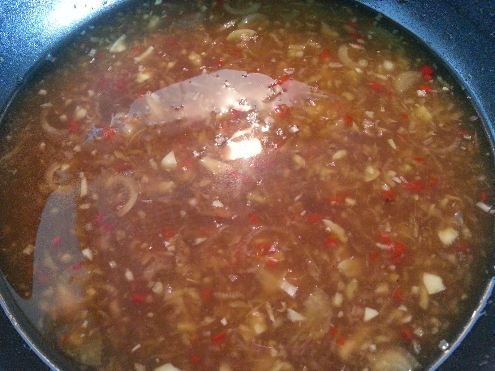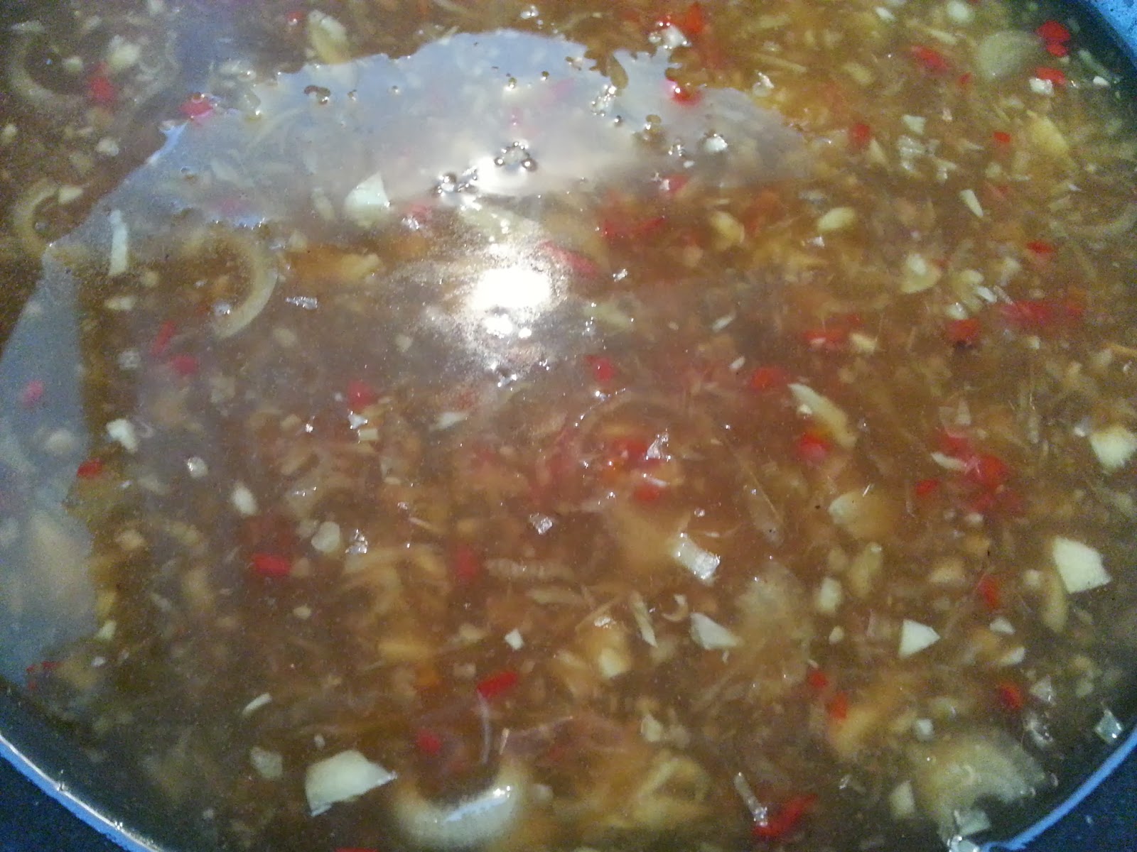 Then add cornstarch slurry to thicken sauce.