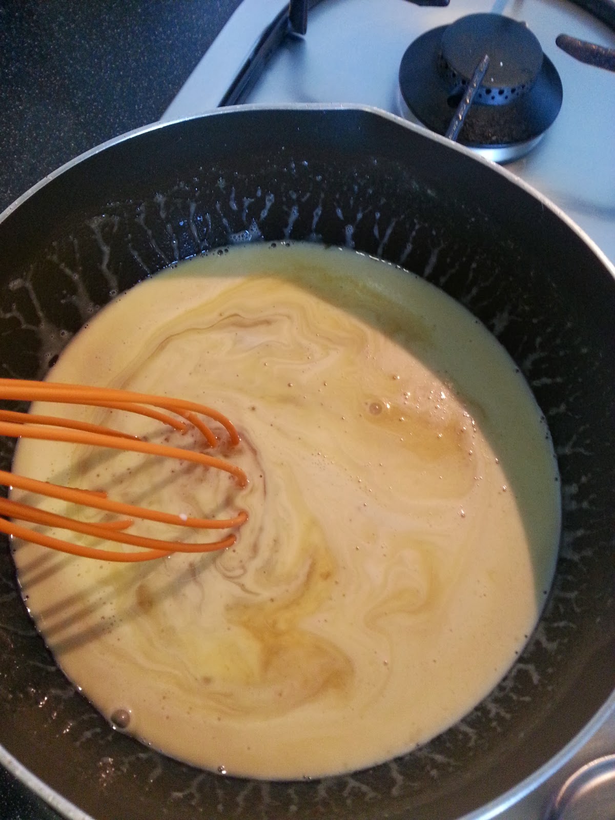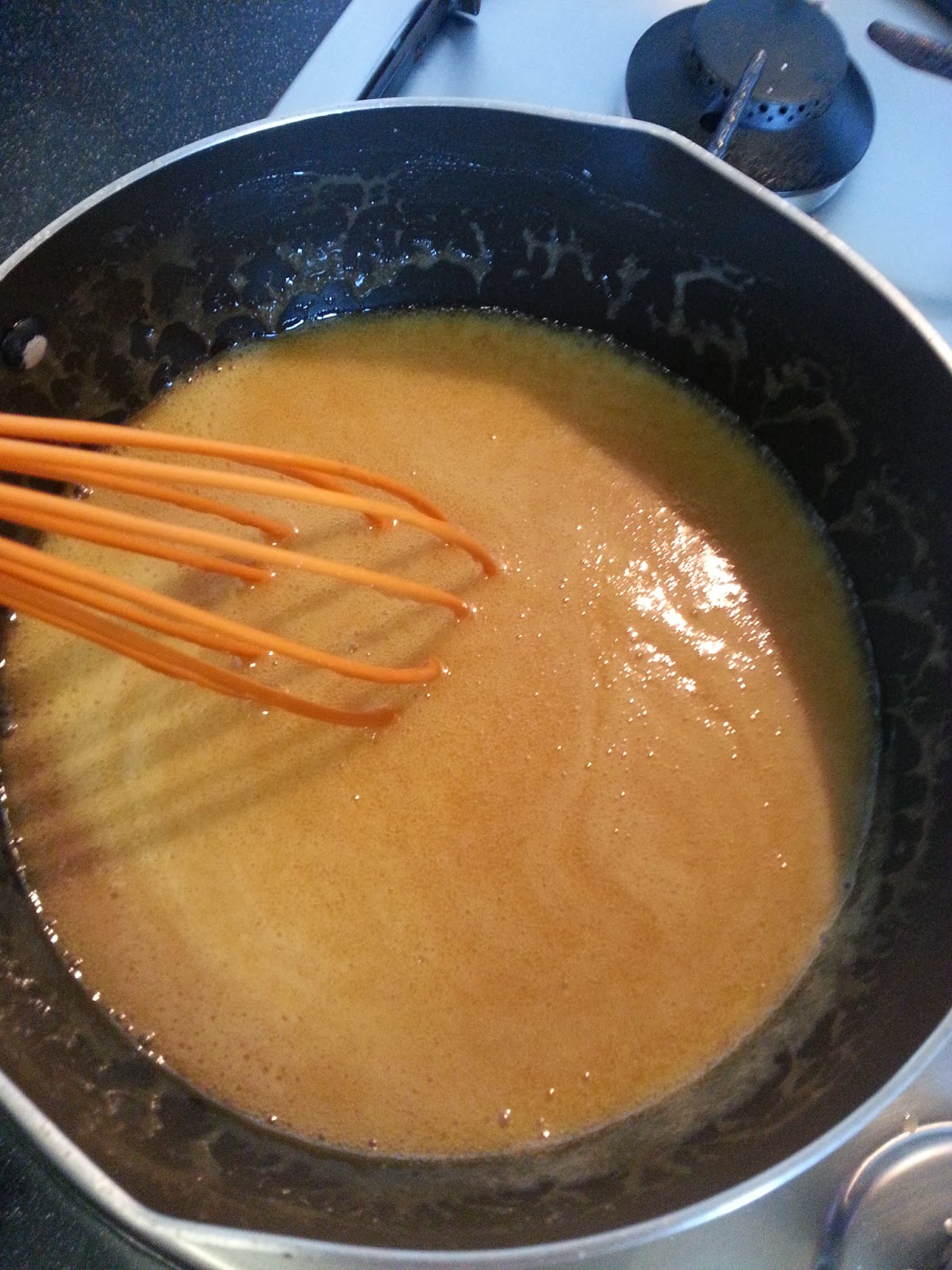 Easy caramel sauce for lazy people like me! LOL! I know there are very specific techniques in making good caramel sauce… it usually involve a thermometer and I do not have it… nor do I have corn syrup. Neither do I have the patience. So this method worked out well, as it uses very basic ingredients. Taste great too!