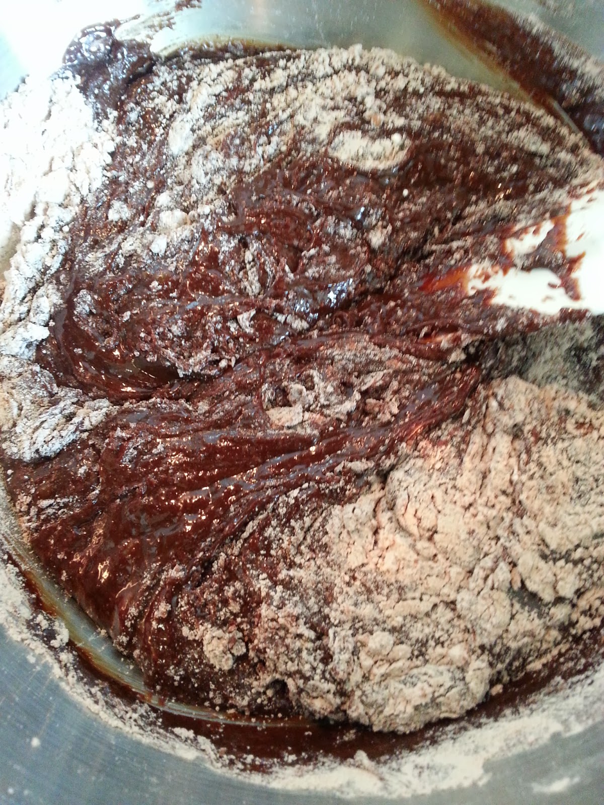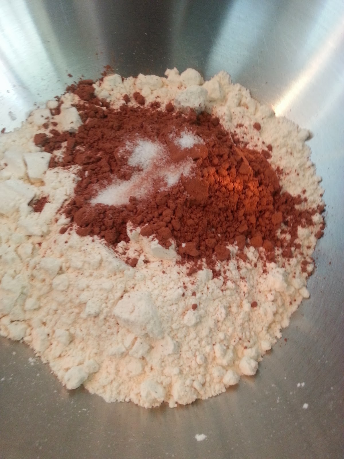 Mix flour, salt, cocoa powder in a large mixing bowl.