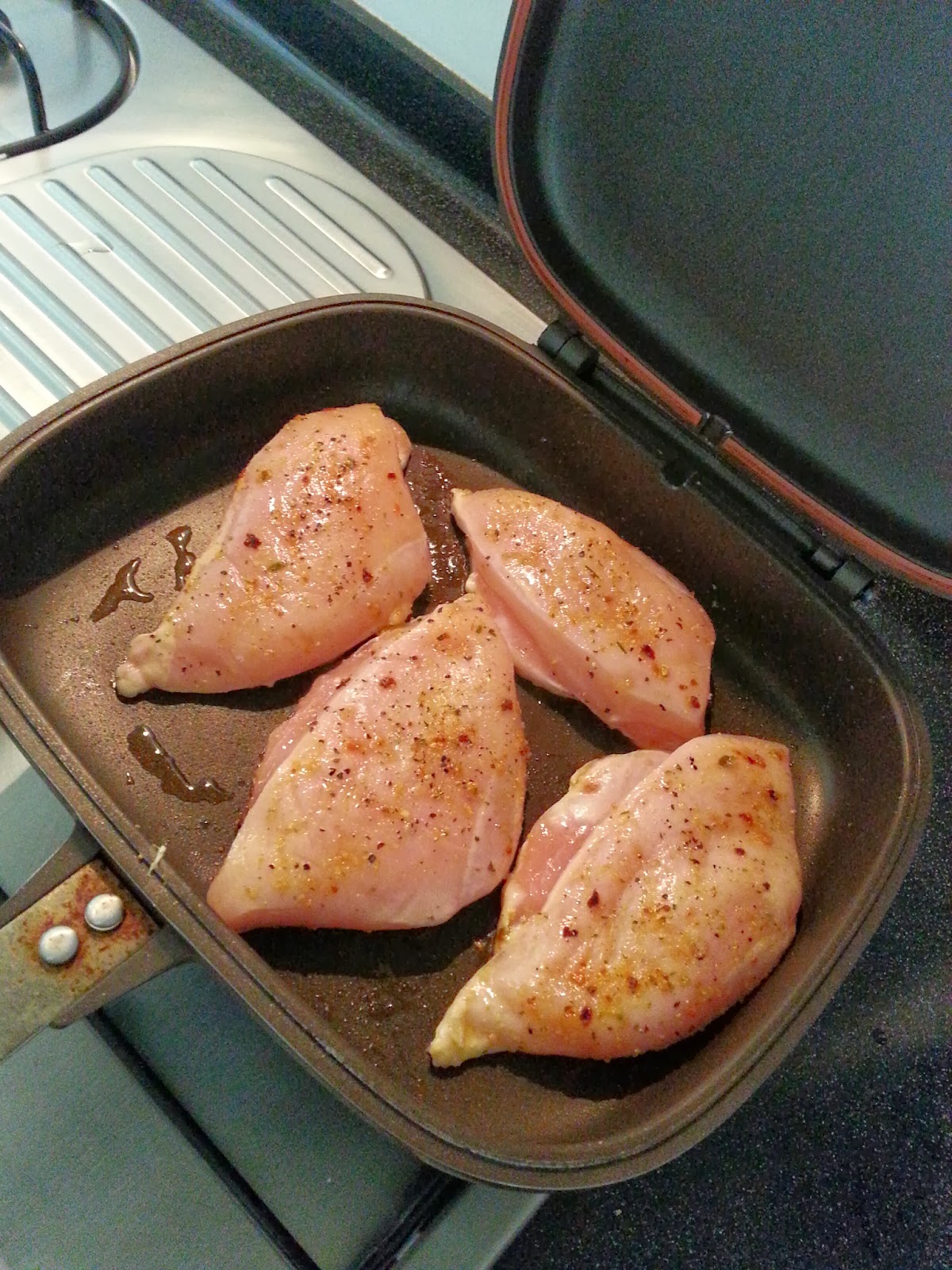 Season chicken breasts with the remaining spices, salt, and pepper.