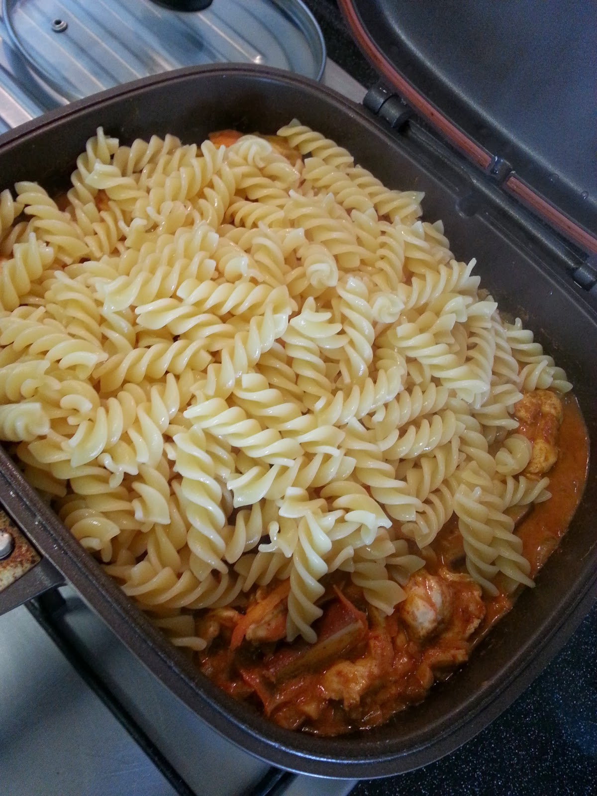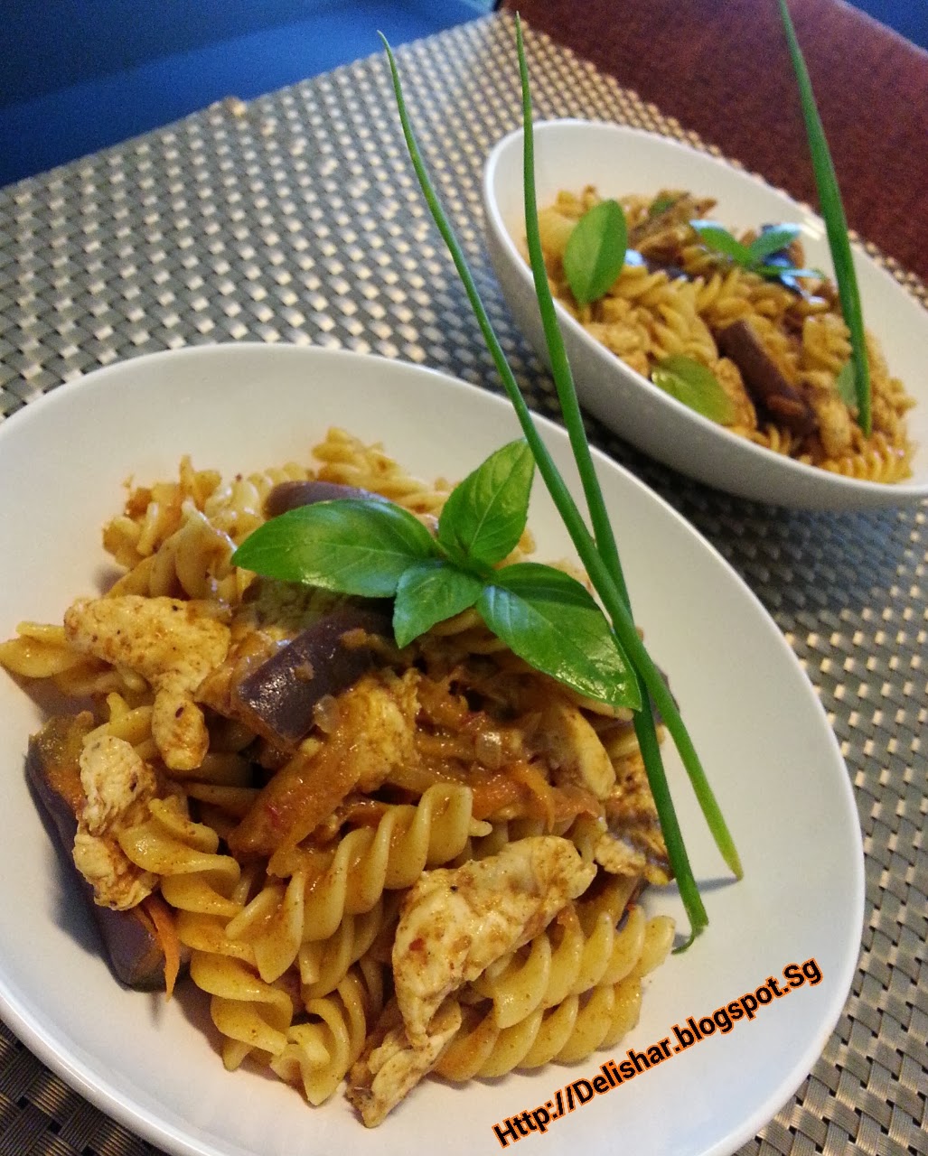 Once again I was craving something spicy, but I felt guilty that le husband isn’t getting his pasta fix. So I made the curry and tossed in the pasta. It was really yummy! The al dente fusilli buried a good amount of the tangy and spicy gravy between itself, giving it just the right bite. I chose to use brinjal here, but I’m sure any other vegetable… esp okra will work really well with the dish.