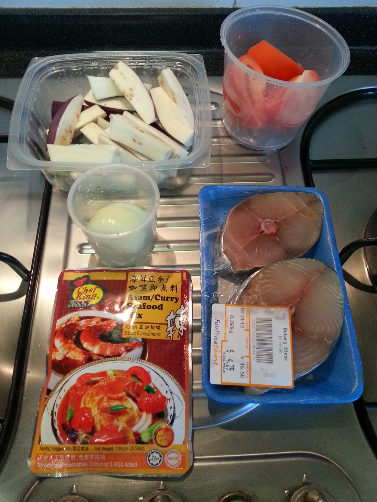 I do not normally use premixed sauces but I needed a cheat night as I will be home late after my Thai lesson. I needed something quick because I needed to get the girls ready for Halloween, and I’ve also been craving assam fish. So I bought a pack to try, and was very impressed by the result. It was so SO yummy! This might be one of those go to recipes when I start working next year.